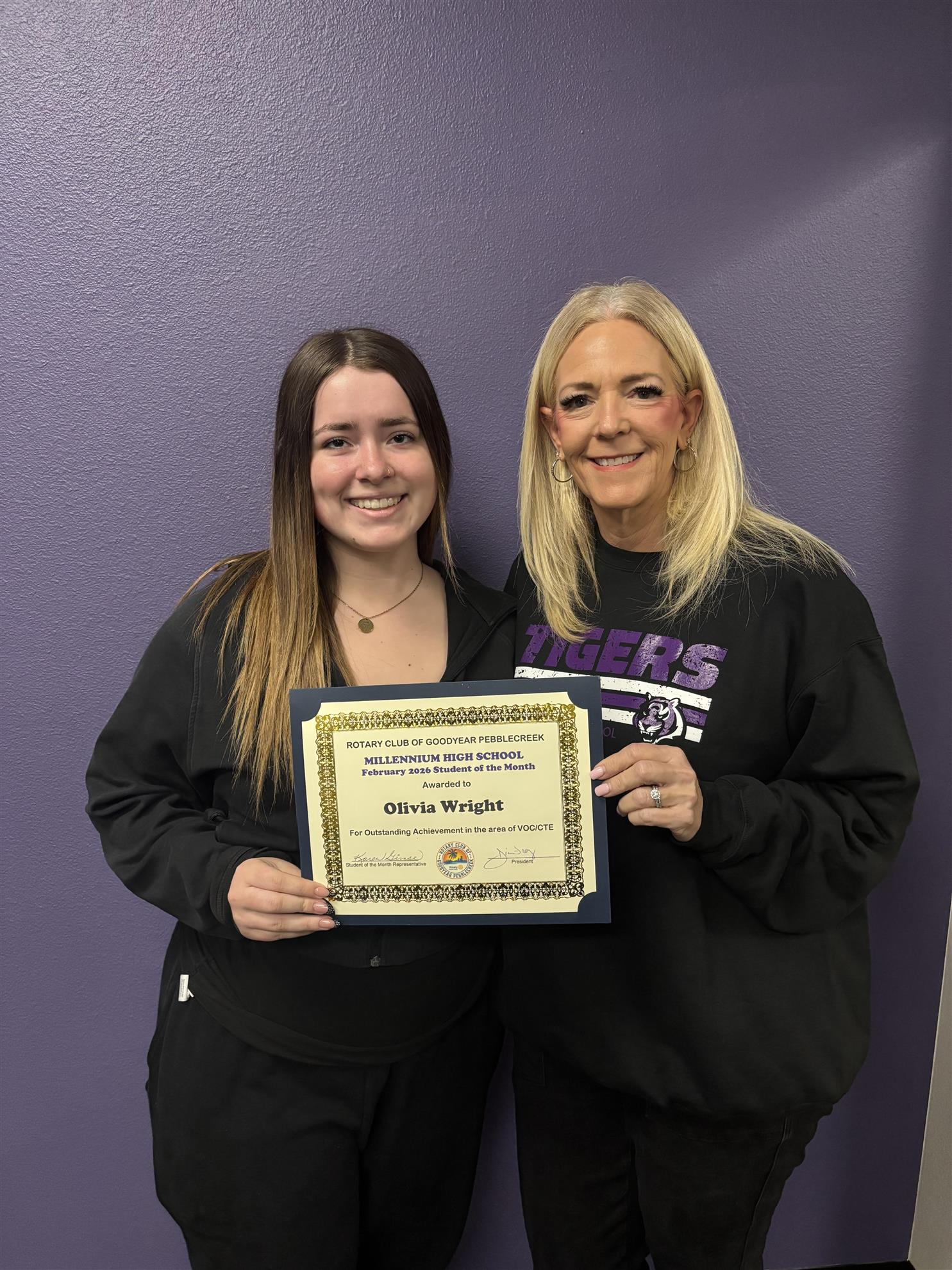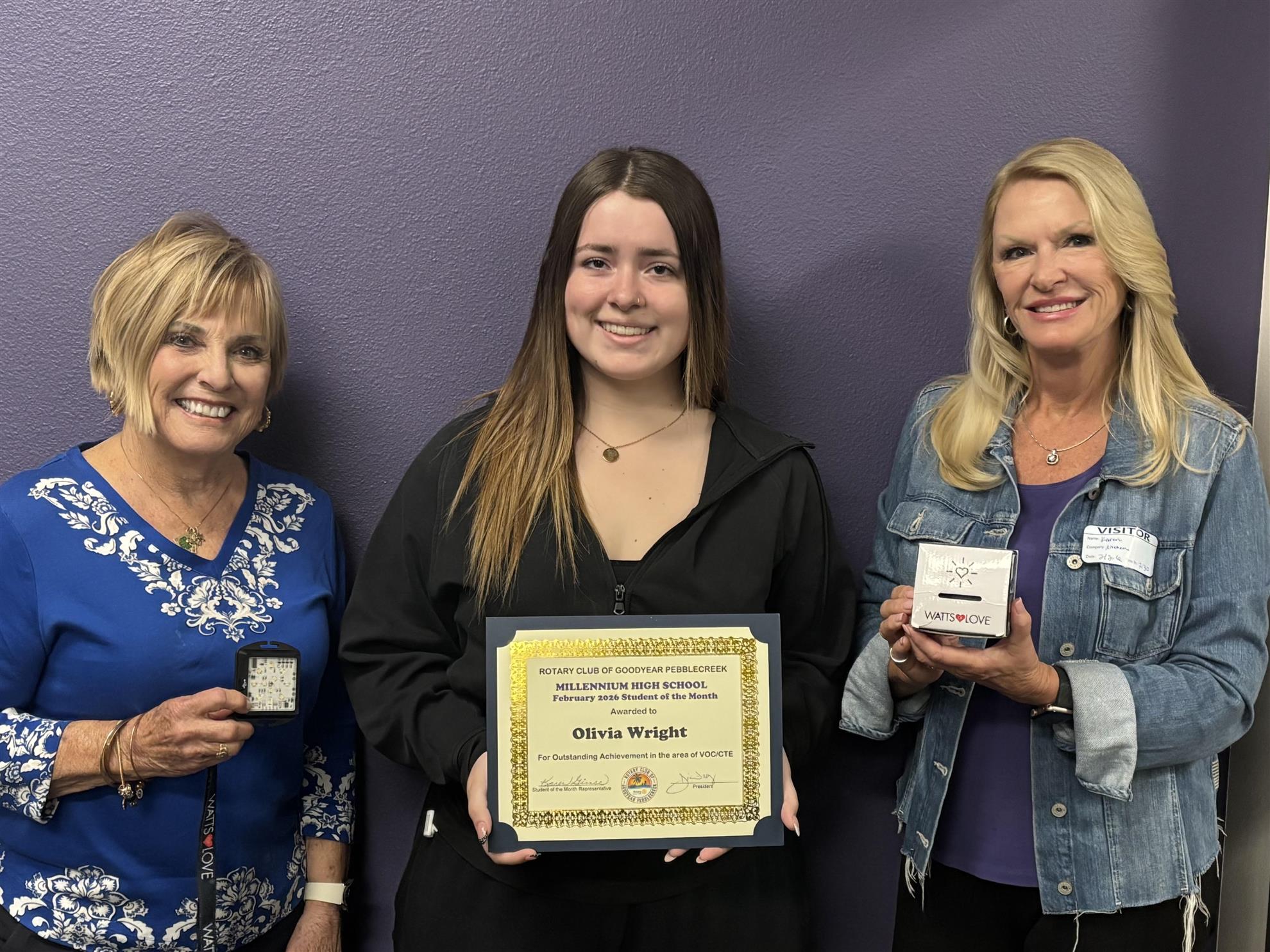 Millennium High School sophomore Olivia Wright has been selected the February 2026 Student of the Month for Outstanding Achievement in Vocational/CTE.